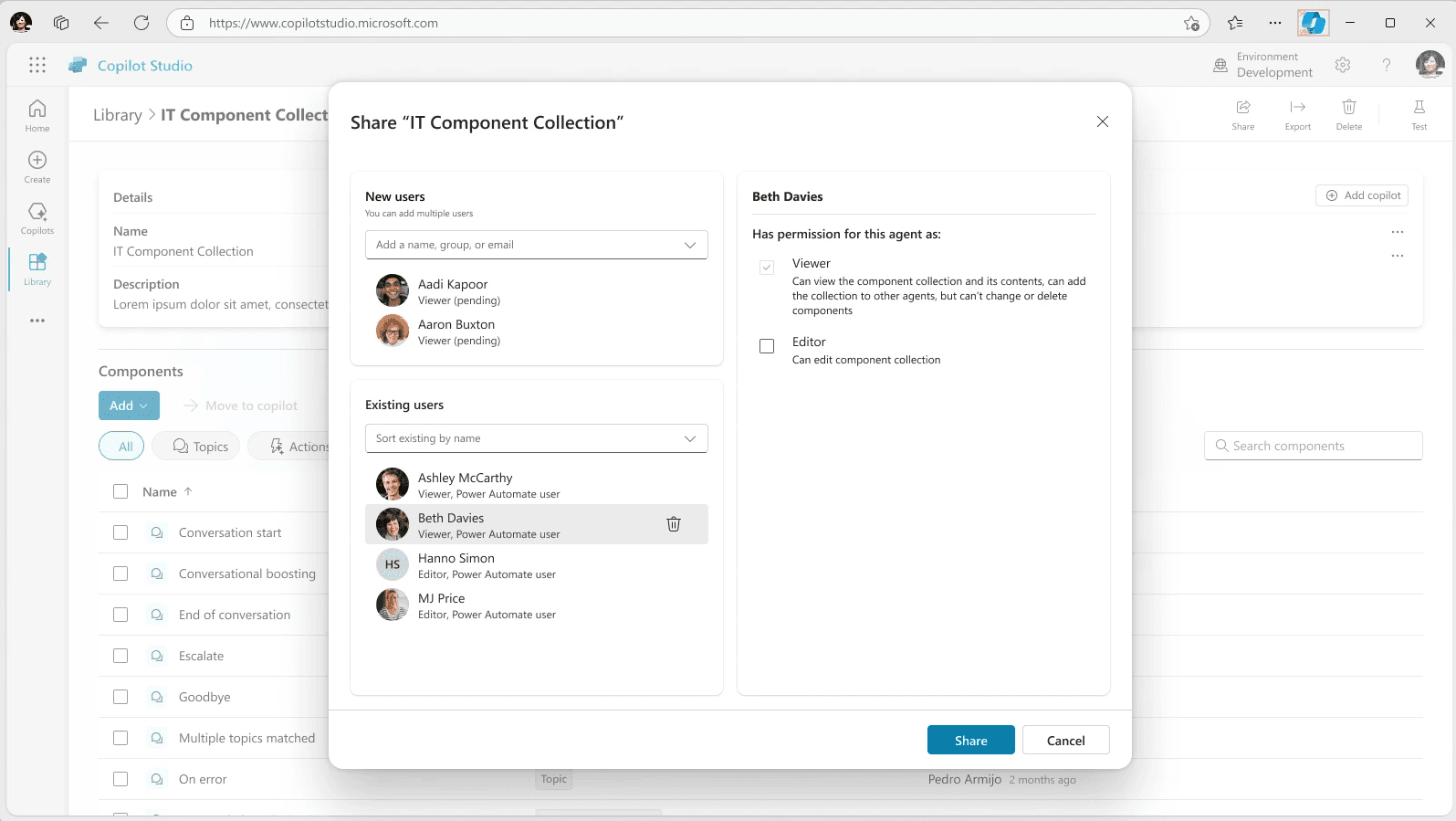 Designing a new feature for Copilot Studio that enables scalable reuse of bot components across agents and environments required solving for modularity, collaboration, and enterprise-grade governance. The team reimagined how makers share and manage content—balancing simplicity for low-code users with robust controls for large organizations. This work addressed a top customer need and unlocked new adoption and monetization pathways.