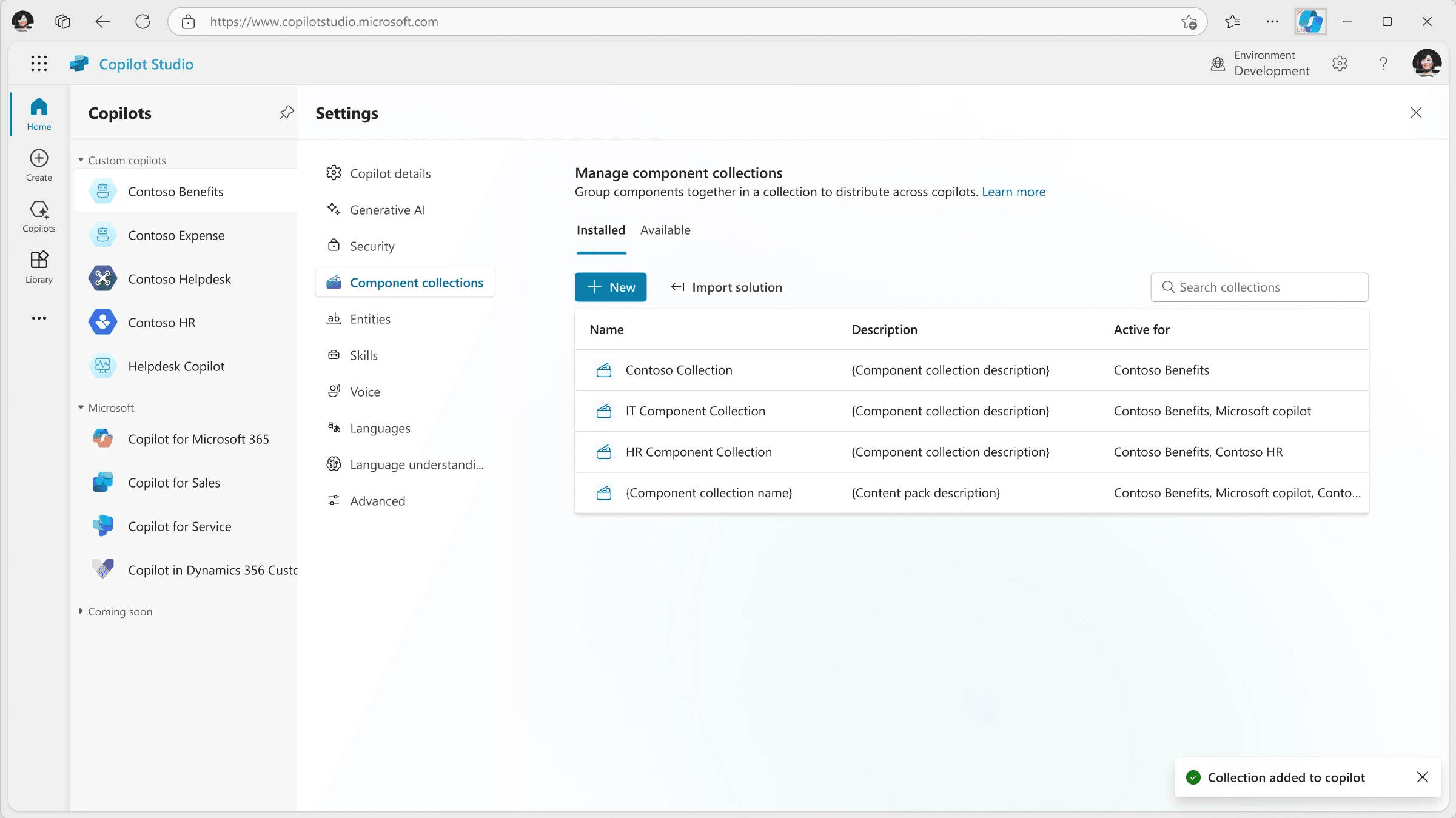 A redesign of the Copilot Studio Library to accommodate shared elements