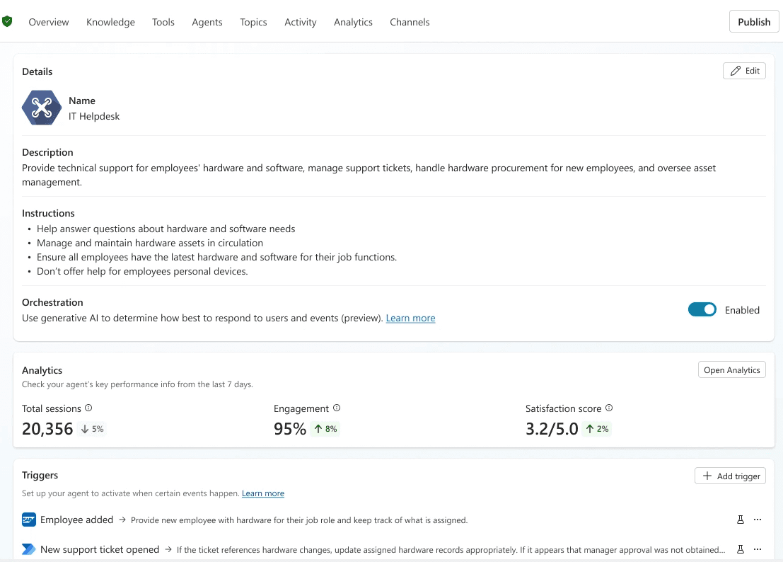 Enterprise users needed a way to build and manage AI copilots without deep technical expertise. The platform has to balance flexibility (for power users) with simplicity (for business users), while maintaining transparency and control over AI behavior.